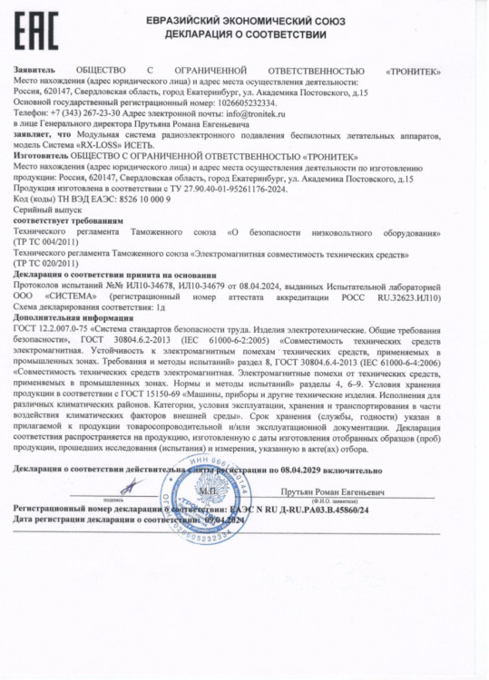Декларация ТР ТС ИСЕТЬ